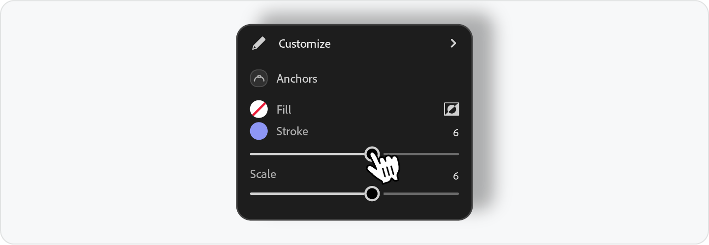 - Scale: Increases or decreases the visual size of the anchors or handles.